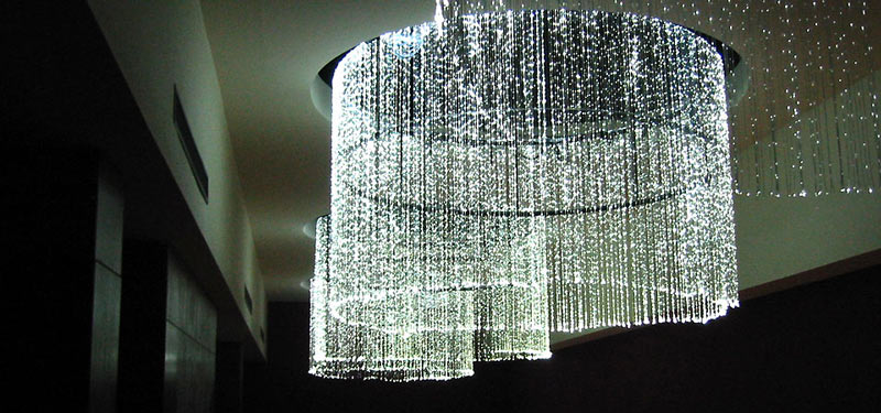 En realidad la fibra óptica tiene ciertas ventajas que ya se utilizan en diversos proyectos de iluminación en interiores y exteriores de todo el mundo. Para el Puente del Milenio de Gatshead, en el Reino Unido, se buscaba una iluminación discreta, de bajo mantenimiento que pudiera ser encerrada en el barandal y que iluminara el camino a lo largo de los muelles. La fibra óptica se instaló adentro del pasamanos hueco. Tan sólo un alimentador puede iluminar 20 metros del barandal, cubriendo tanto la funcionalidad como el decorado discreto y la total seguridad para los transeúntes que deseen apoyarse en el tubo, ya que no despedirá calor. La conocida instalación Skyspace de James Turrell también fue iluminada usado esta tecnología. Los visitantes son guiados en la estructura por una pasarela de luces que son activadas por un sensor automático en la entrada del túnel. Además, un halo de fibra óptica rodea el interior de la estructura en forma de cúpula, iluminando el techo con una luz sutil pero impactante. Los halógenos de 100W que alimentan las fibras ópticas están protegidos de la mirada de los visitantes dentro del banco de piedra. La fibra óptica eran la solución ideal de la iluminación para esta ubicación remota debido a sus bajos requerimientos de mantenimiento. Las luces no llevan electricidad, solamente en los extremos, y no emiten calor. Como tales, están perfectamente adaptadas a las condiciones climáticas adversas. as fibras ópticas también pueden utilizarse sin difusores y mostrando las fibras, como en el caso del Bar Crocodillos, en el Reino Unido. En ese proyecto, se logró un efecto diferente para la sección del techo de la barra de bebidas al dejar sin cortar el final de las fibras. Un efecto funcional y sin duda muy decorativo. En uno de los Hoteles Hilton se usó esta tecnología en el exihibidor de puros de tabaco debido a que la tecnología no produce calor, lo que seca el tabaco. Esto la convierte en la solución ideal para proyectos con cierta especificidad que otras tecnologías no pueden cumplir por completo. Otro ejemplo de esto es el museo Royal Observatory, en Greenwich, en el que la fibra provee de una iluminación eficiente y segura al iluminar estos instrumentos de navegación históricos y antiquísimos, ya que el sistema se montó con un dimmer integral que permite controlar el nivel de iluminación. Además, para generar un baño más general en la iluminación se utilizan unos accesorios para el final de la fibra que ayudan a dispersar la luz. La iluminación con fibra óptica ha crecido tanto, que ya existen fábricas o distribuidoras de dispositivos y accesorios para desempeñar con éxito un proyecto en el que se quiera usar esta tecnología. Los dispositivos incluyen la fuente, la fibra misma y los accesorios al final de la fibra; que tienen diferentes formas para obtener los efectos deseados. Como podemos ver, la fibra óptica es una tecnología que ofrece diversas ventajas que pueden convertirla en una opción viable para el diseño de iluminación en diversos tipos de aplicaciones.